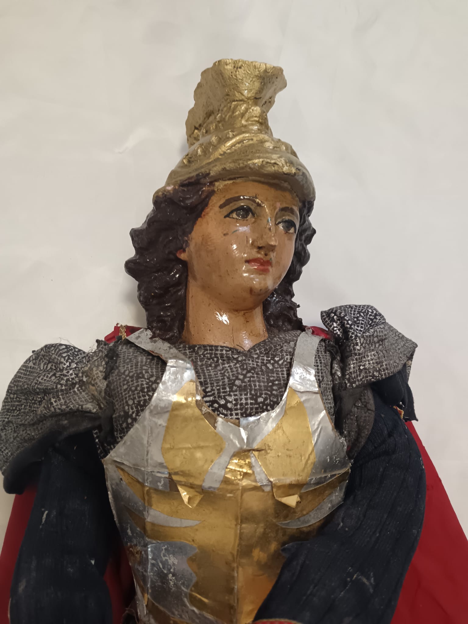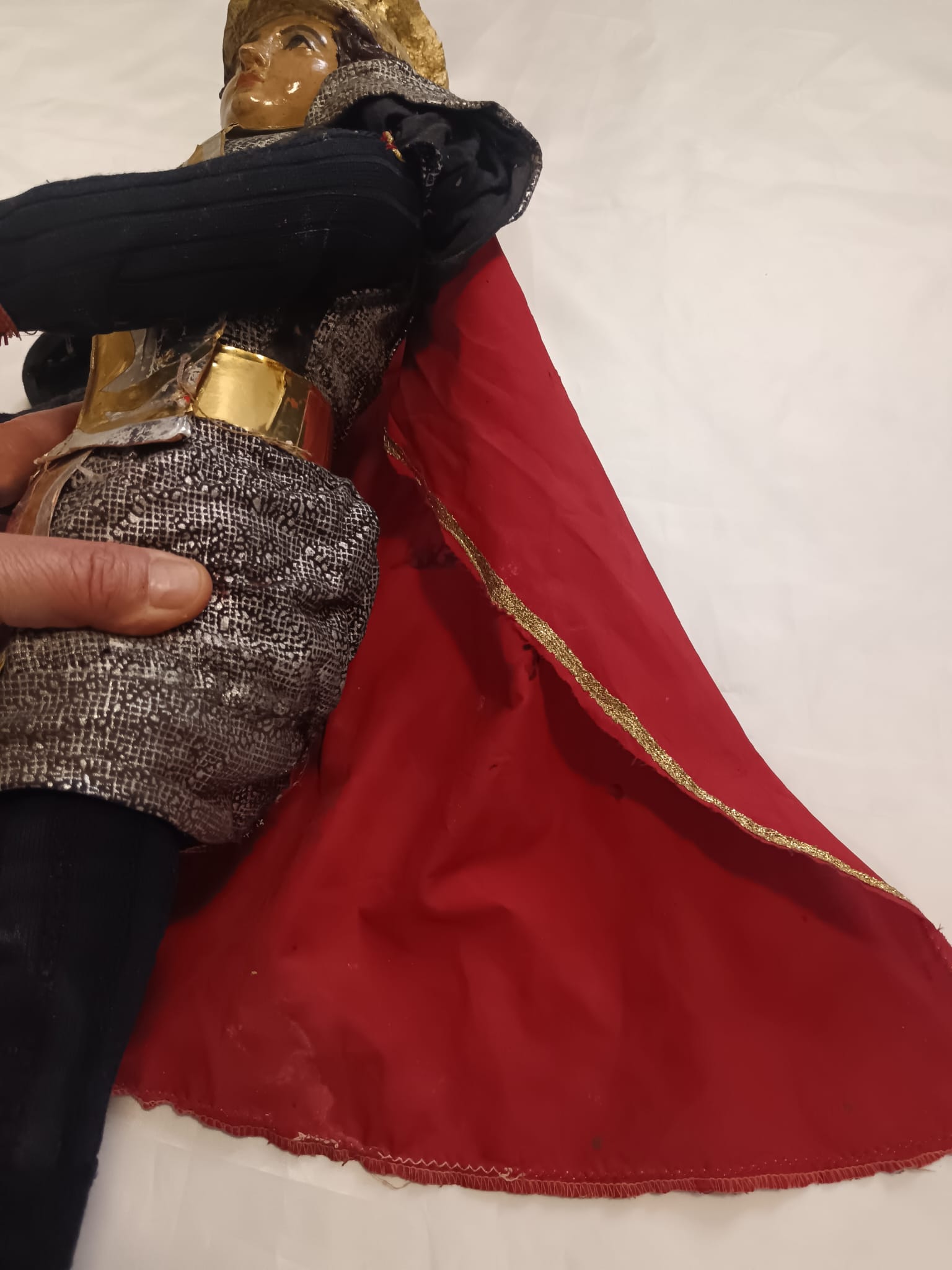 Arti e testa in terracotta dipinta a mano.