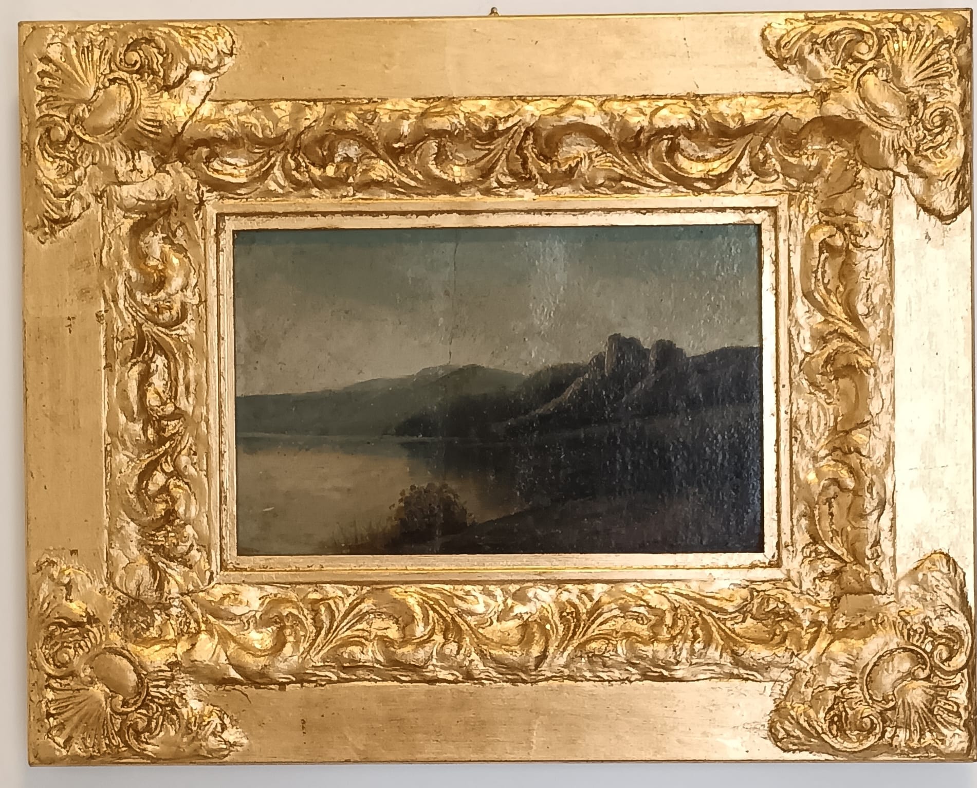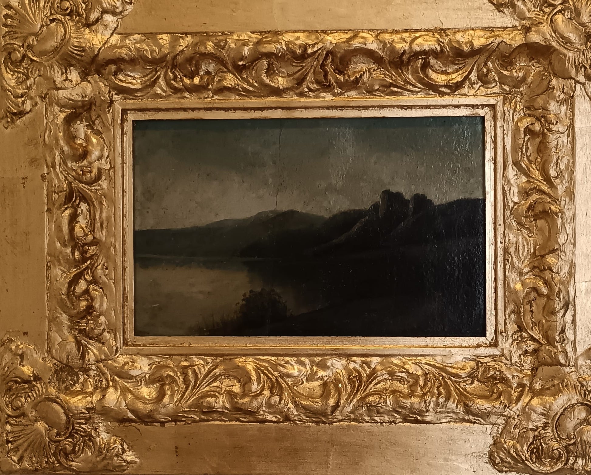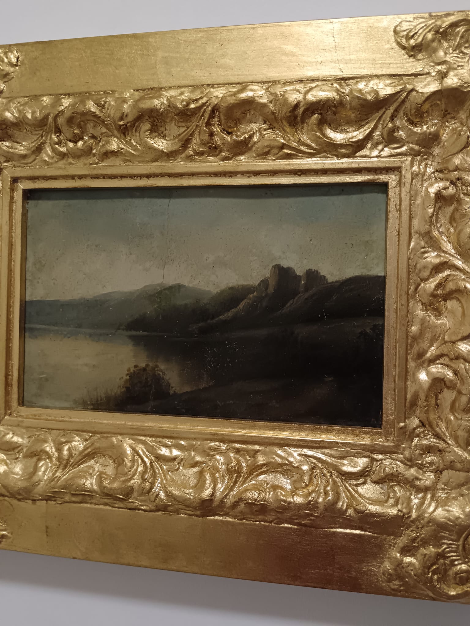 Antico dipinto olio su cartoncino ( scuola europea XIX secolo).