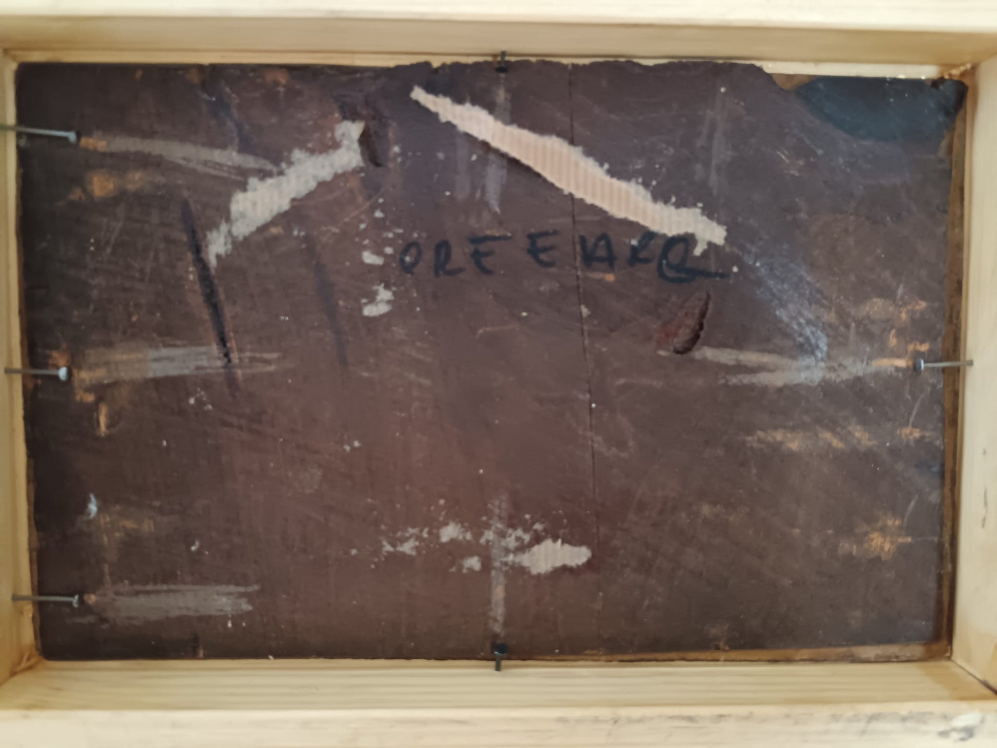 Antico dipinto olio su cartoncino- (scuola europea XIX secolo)