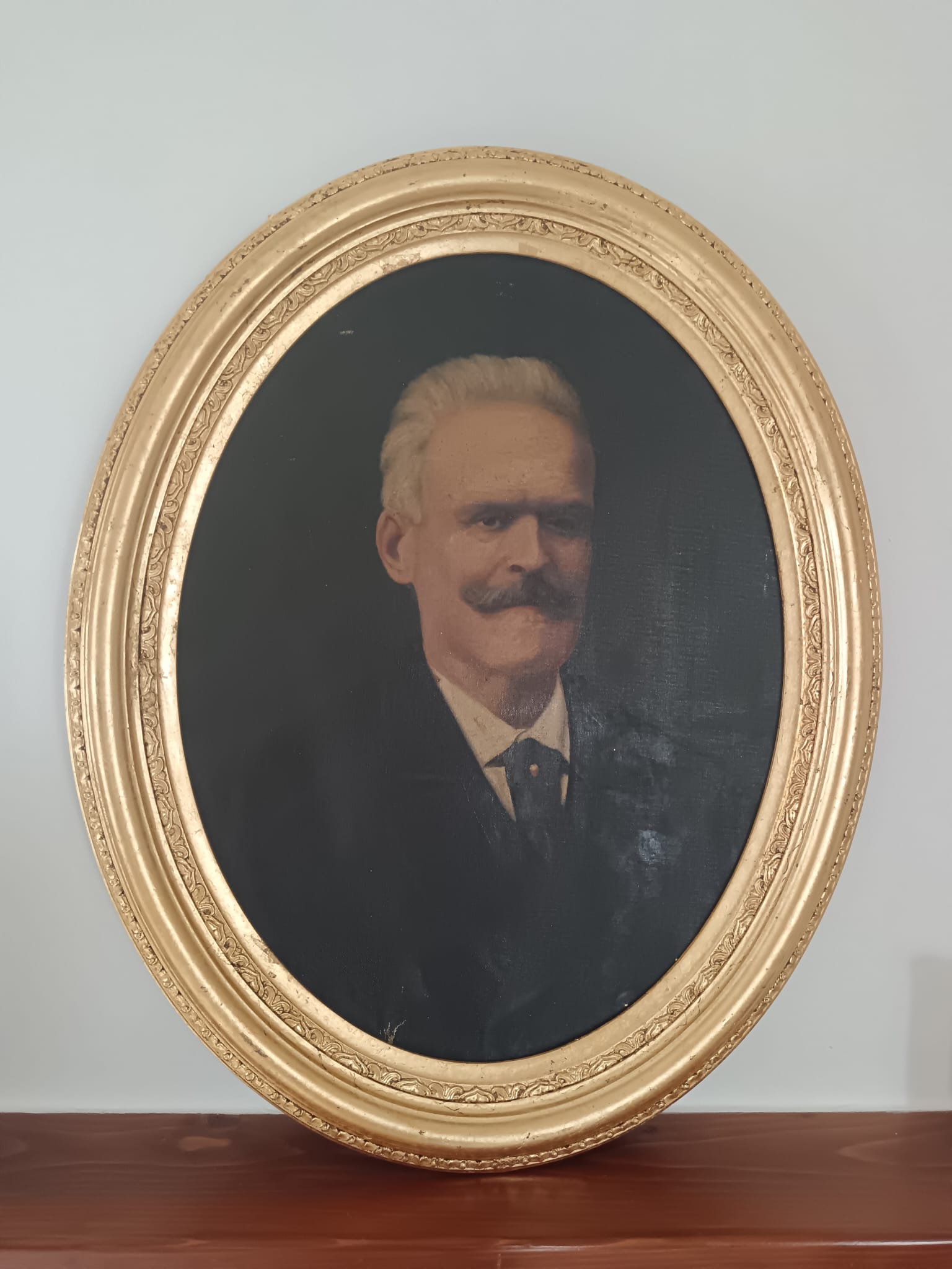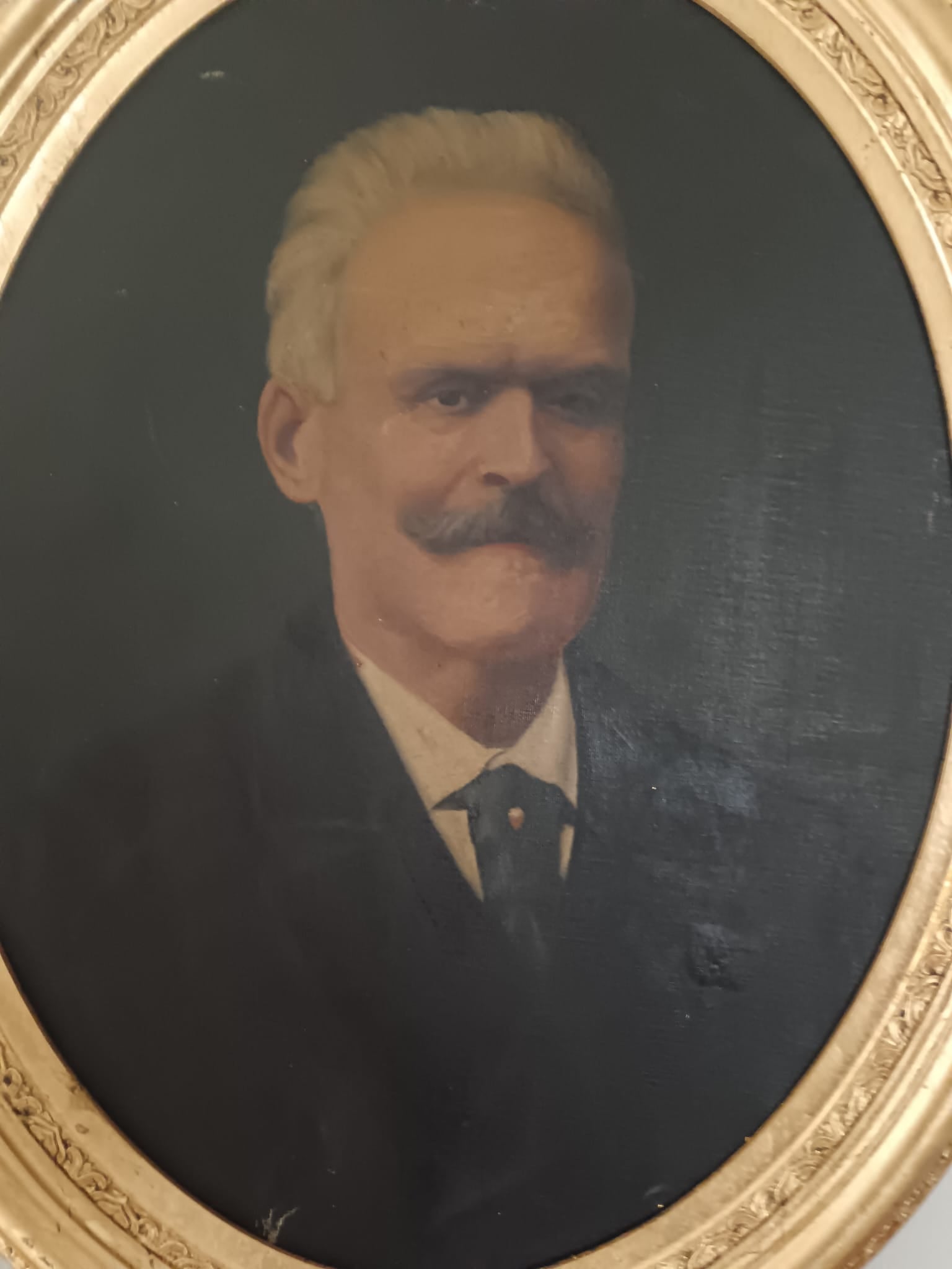 Antico ritratto ( scuola italiana XIX/XX Secolo) dipinto olio su tela applicata su cartoncino.