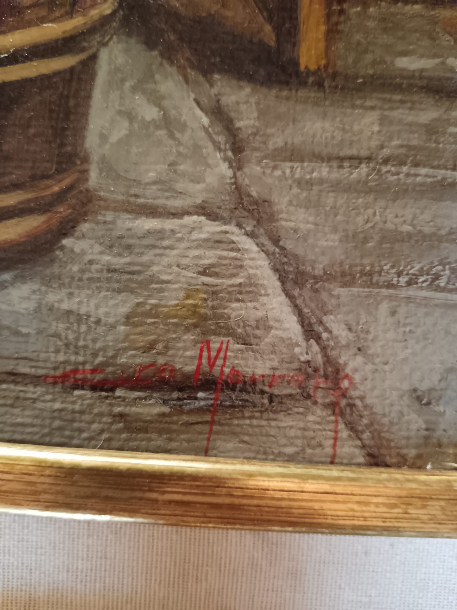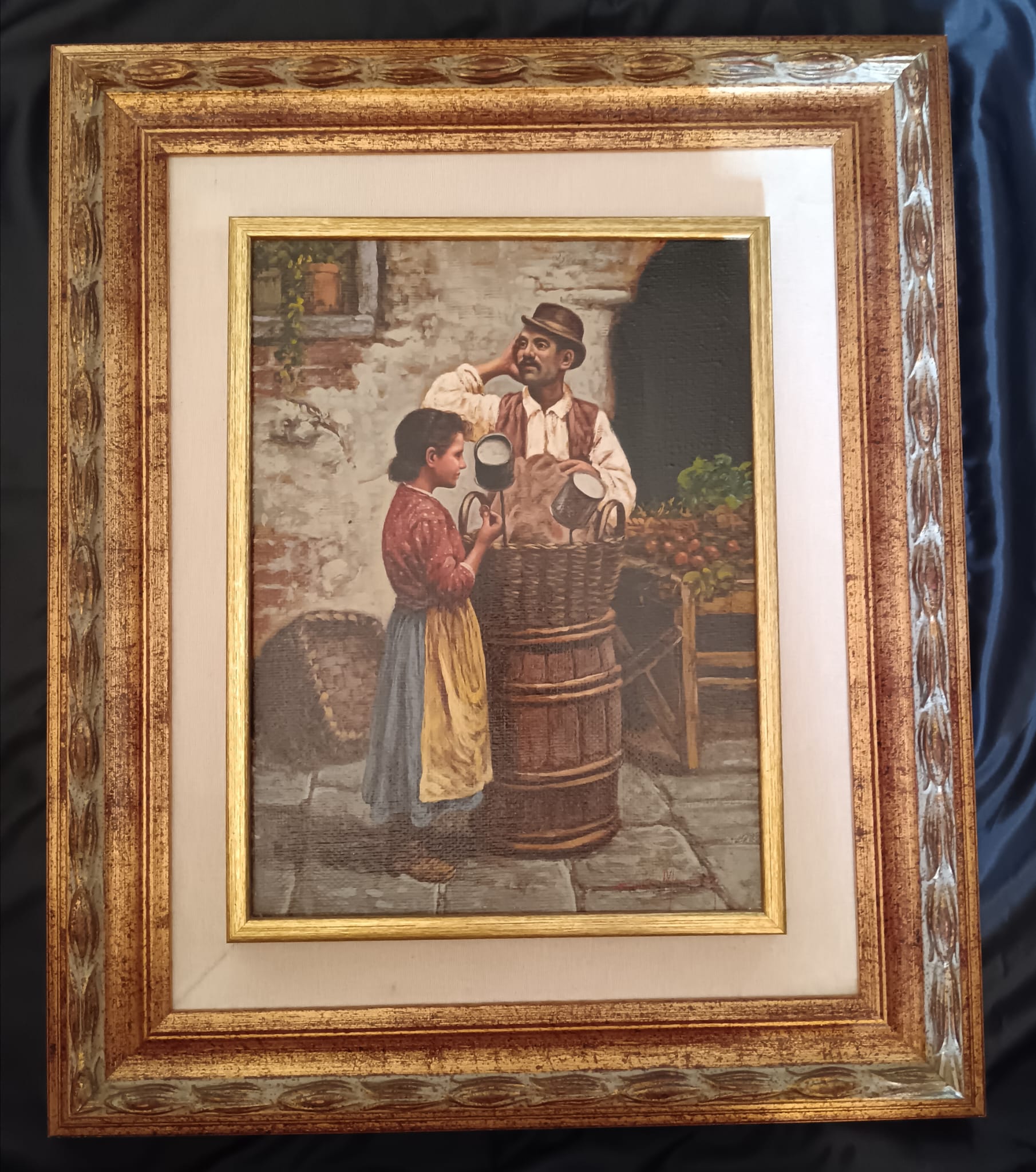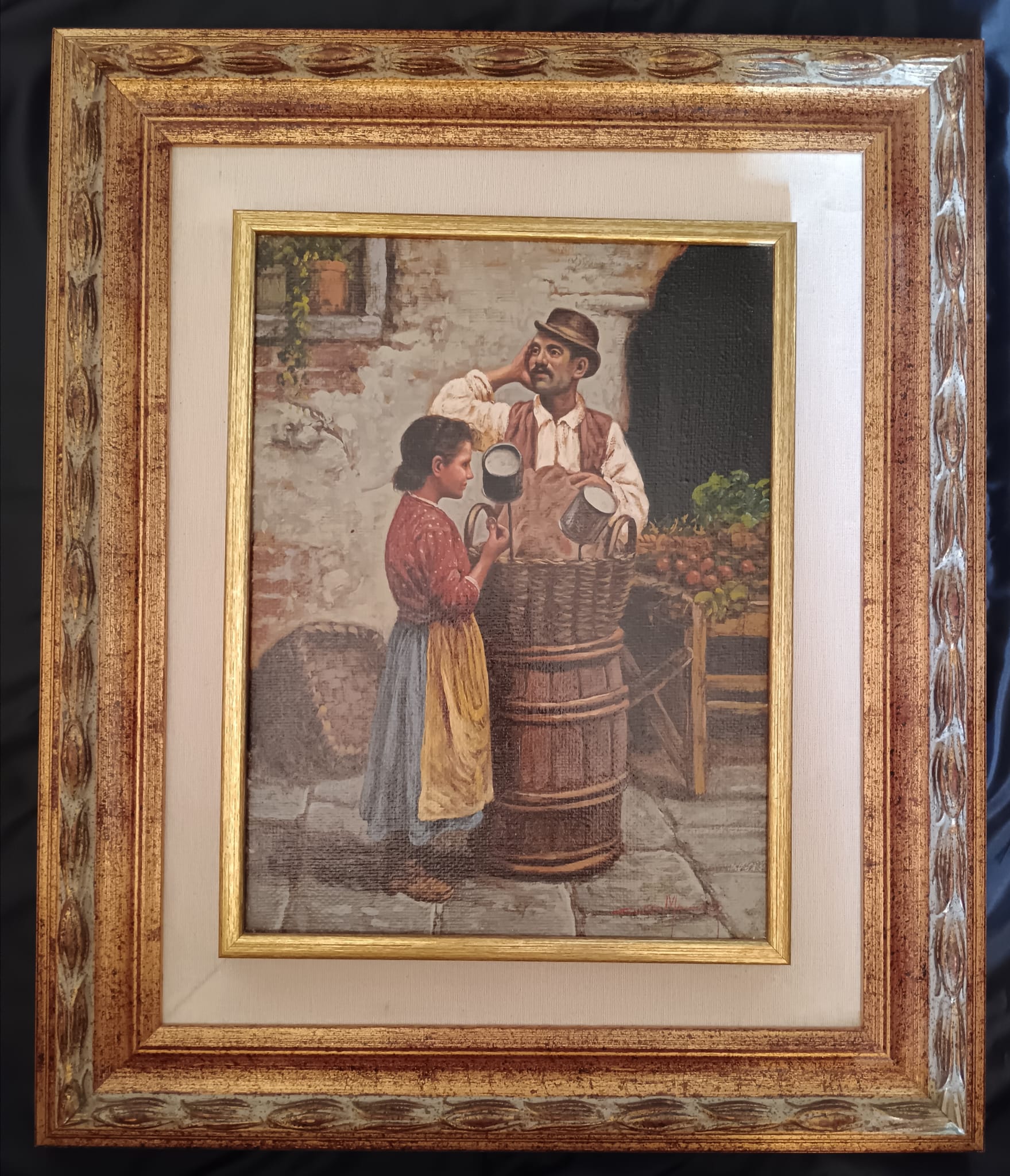 Il dipinto è in ottime condizioni di conservazione, firmato in basso a destra. Cornice originale in legno e passepartout in tessuto bianco. Dimensioni completo di cornice 56 x 66 dimensioni senza cornice 30 x 40.