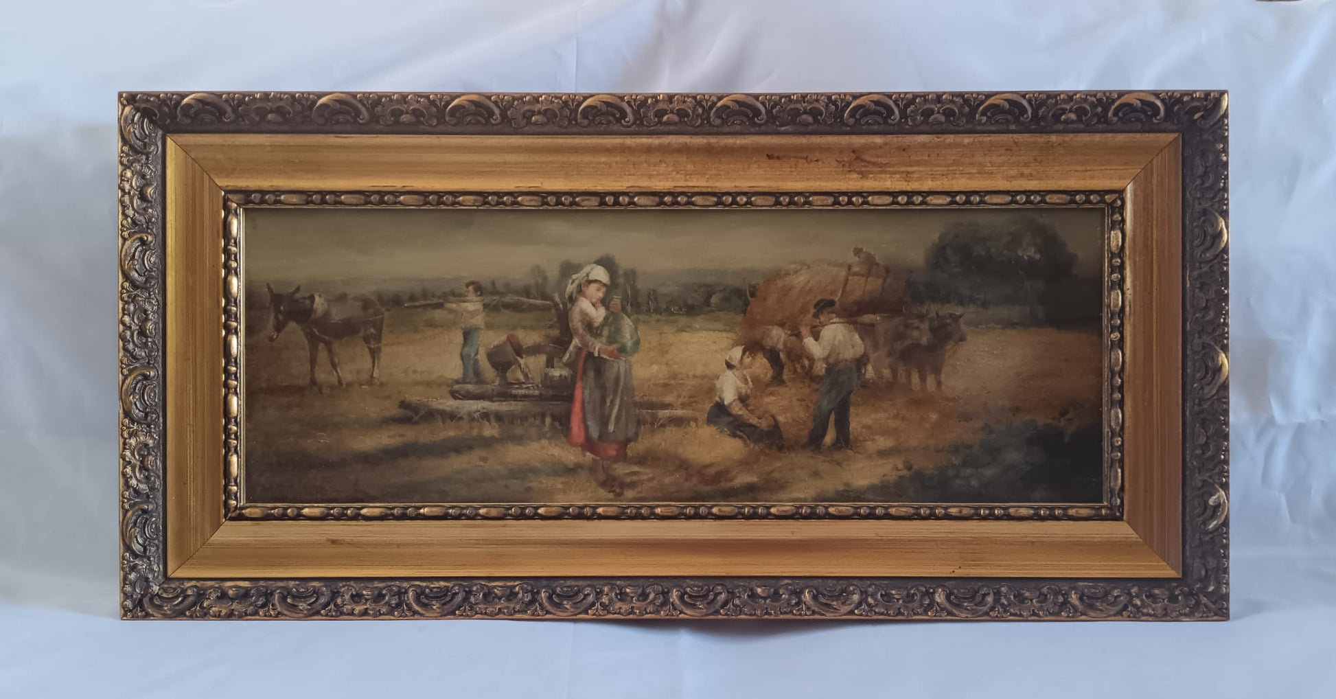 Le opere di Pergola hanno una componente antichizzata che richiama il passato. In questo dipinto viene rappresentata una scena di vita nei campi .