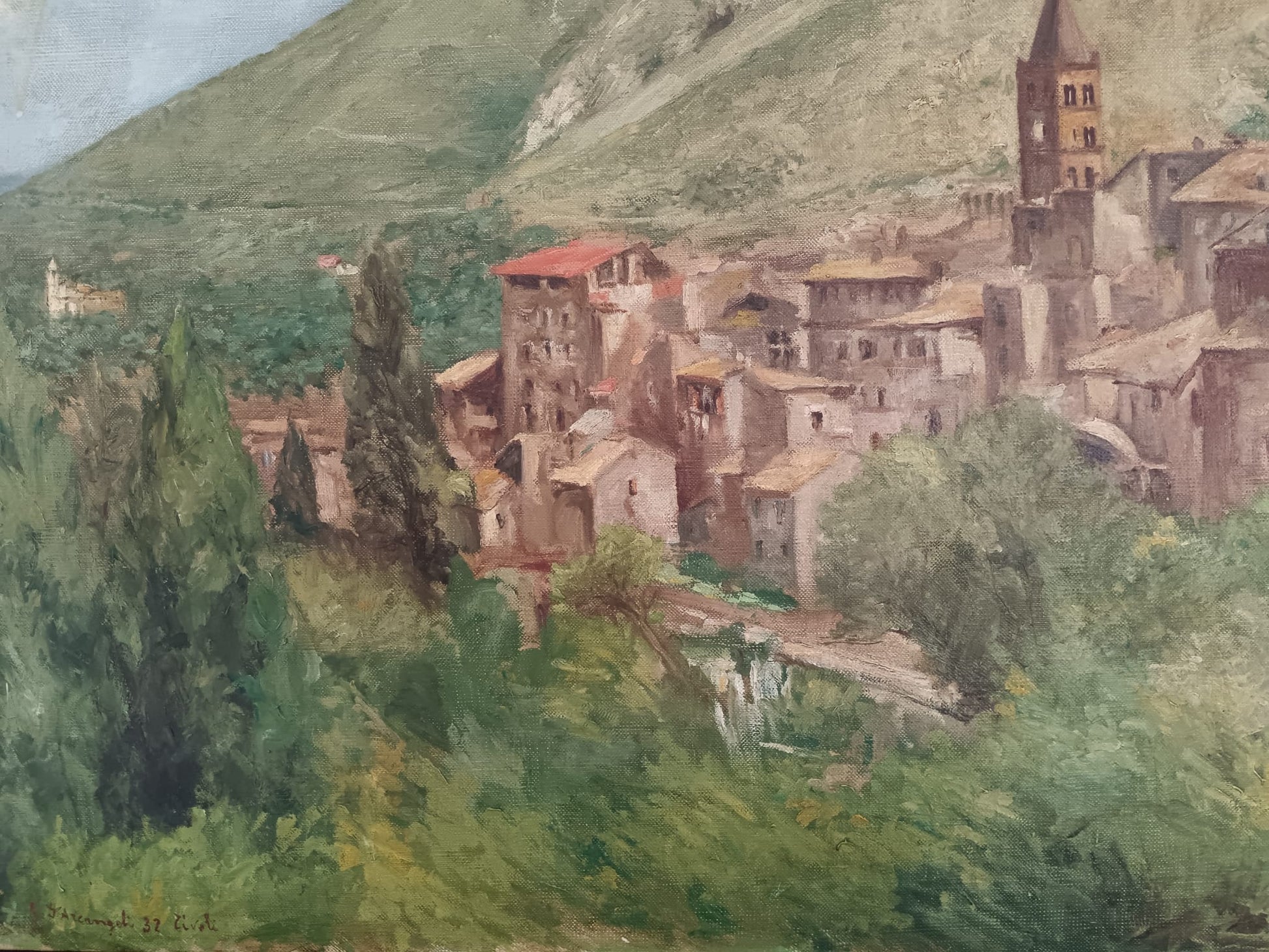 G. D'Arcangeli ( XX Secolo)- dipinto olio su tela veduta di Tivoli ( RM)
