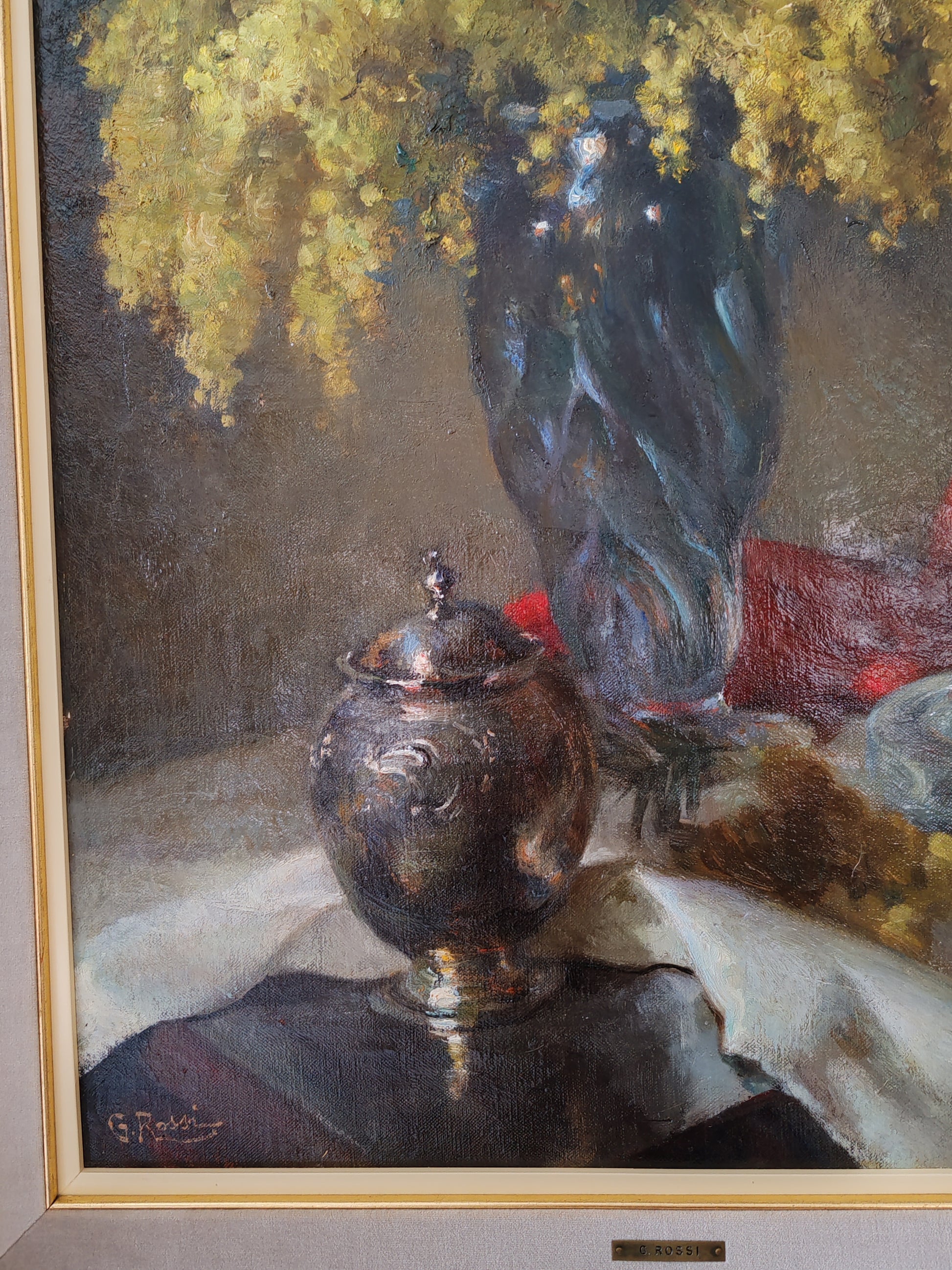 Giuseppe Rossi (1876-1952)- natura morta dipinto olio su tela applicata su pannello (epoca XX secolo)
