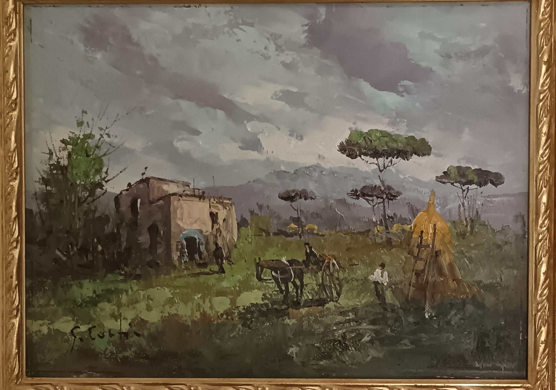 Guglielmo Curti ( Roma 1897-1966) paesaggio dipinto olio su legno.