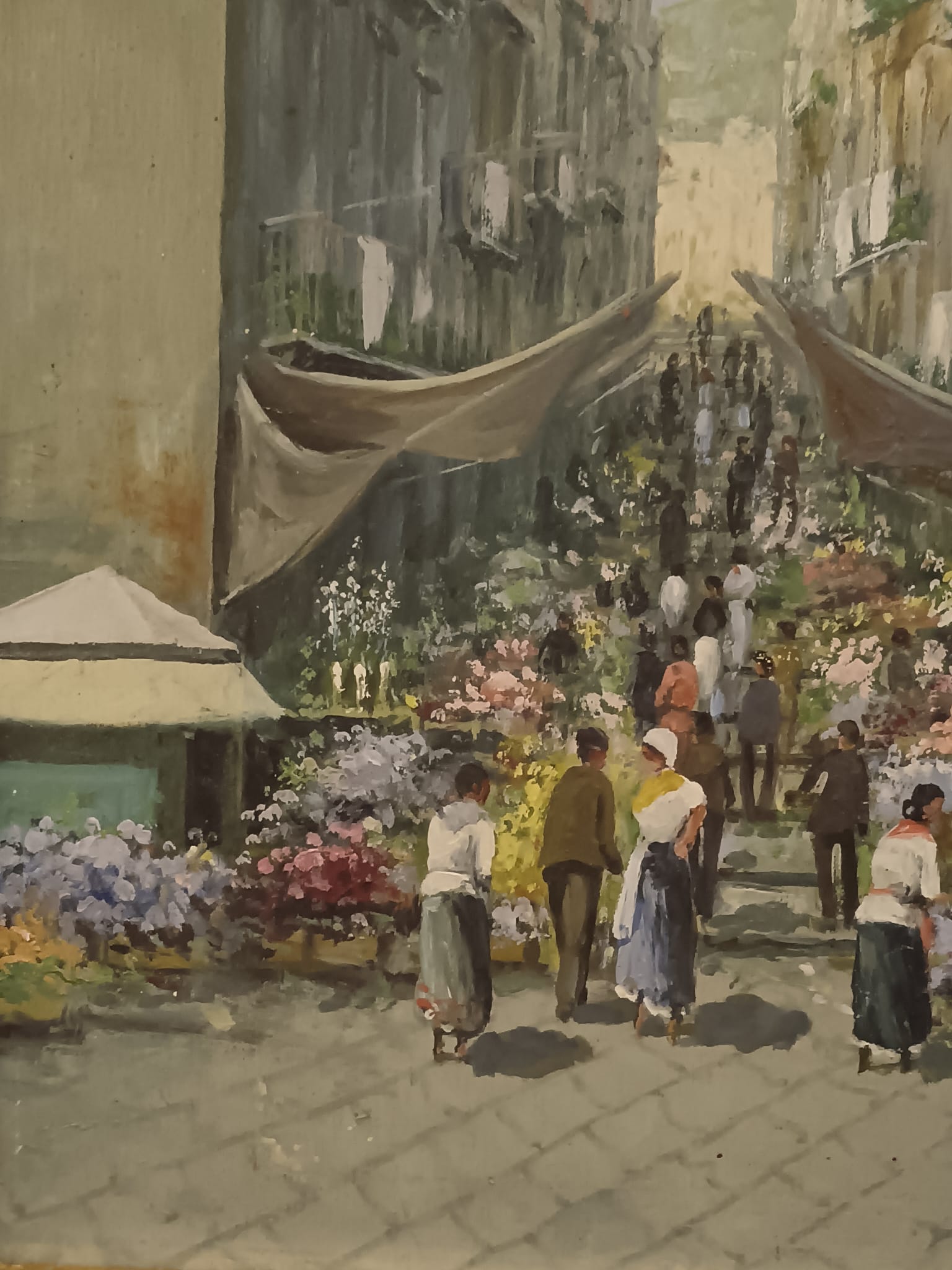 L. Papa (XX Secolo)- Mercato- dipinto olio su legno.
