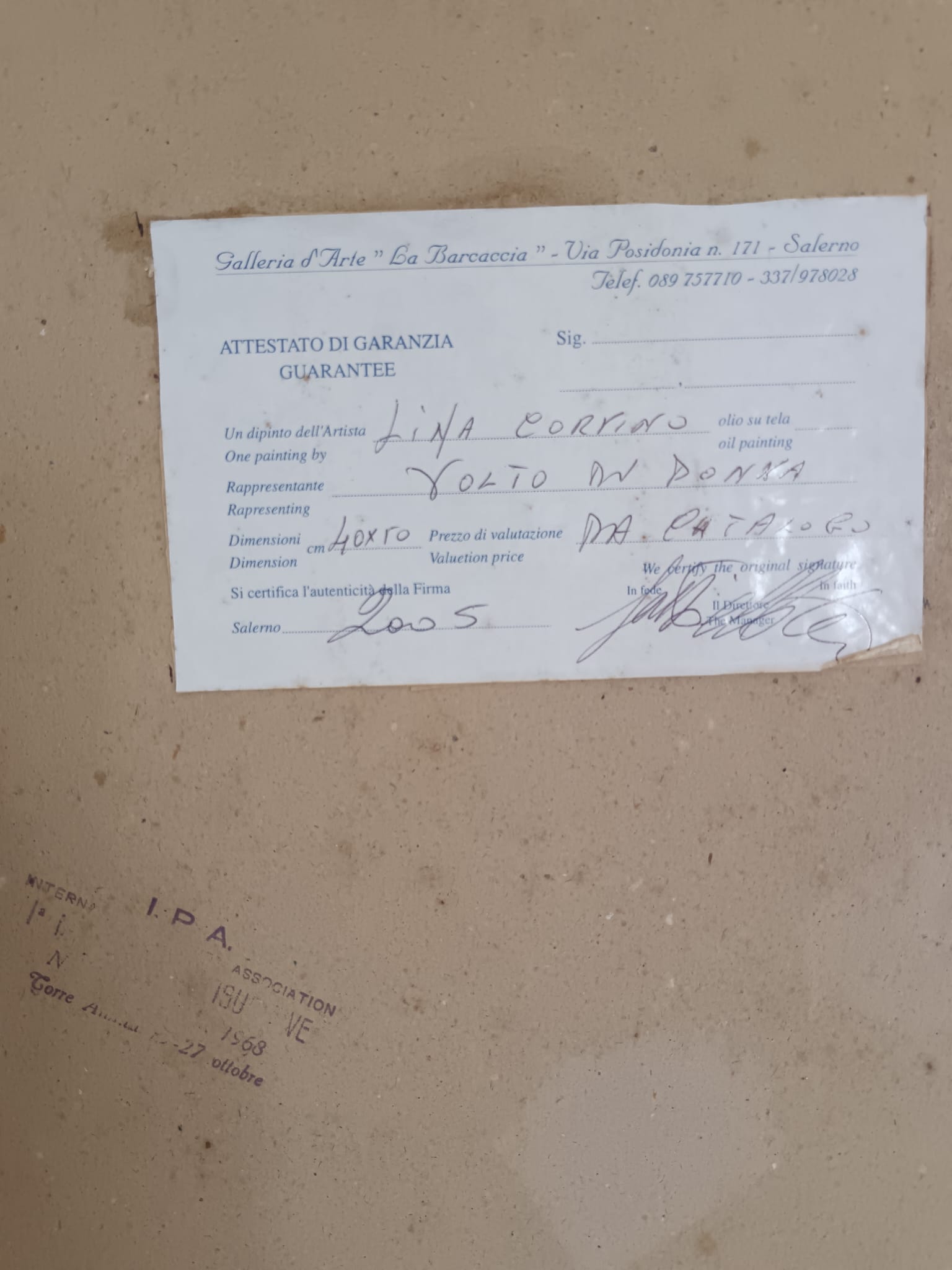 Lina Corvino ( Scuola napoletana XX Secolo) volto di donna, dipinto olio su tela.