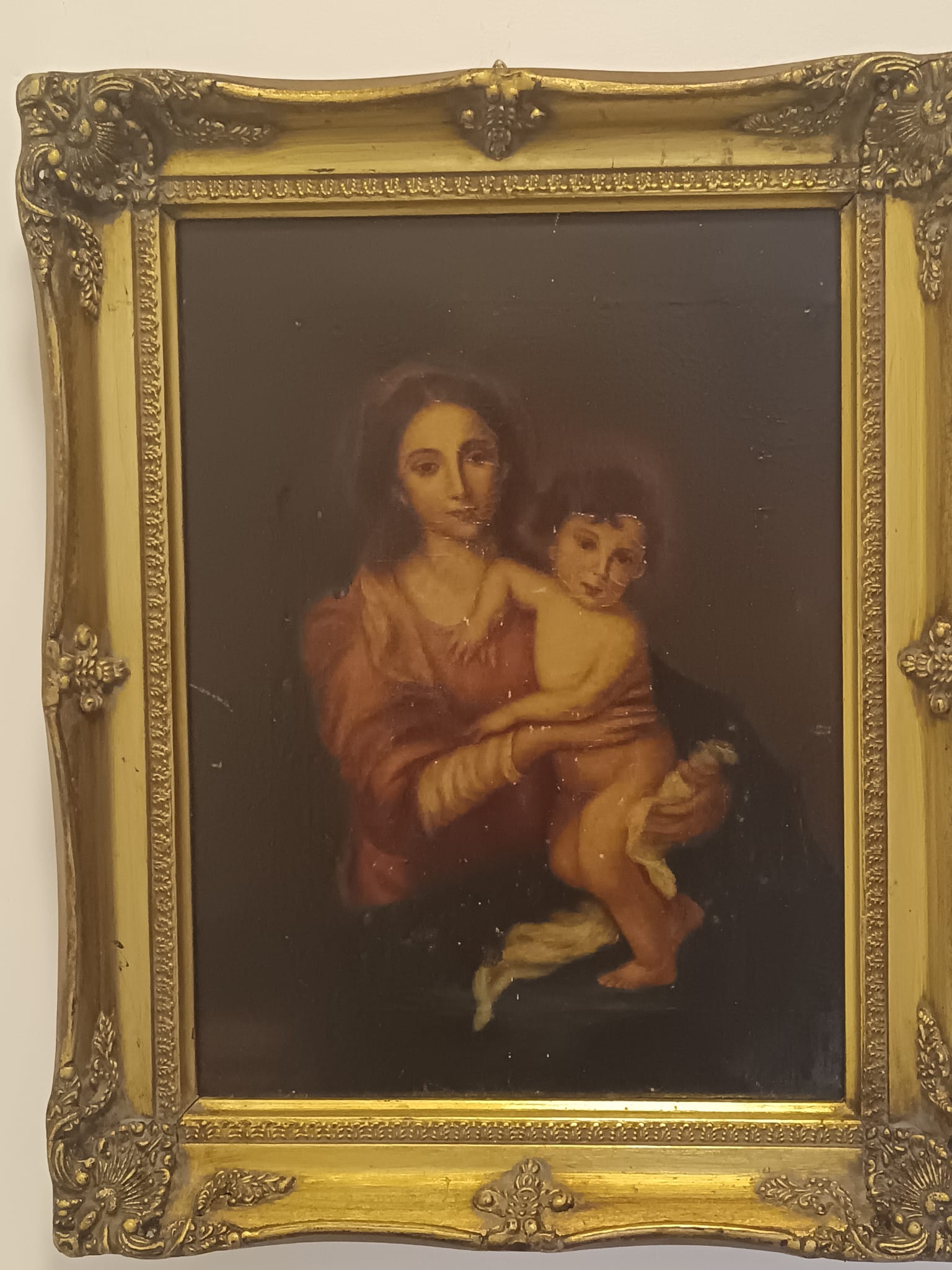 Madonna con bambino dipinto olio su tela- (scuola italiana XIX/XX Secolo)