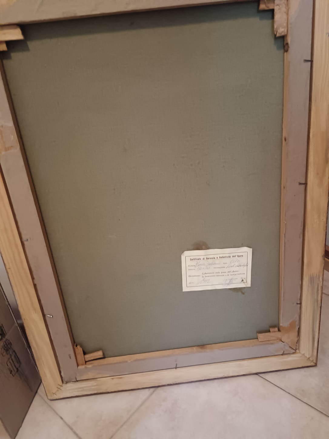 Firmato in basso a destra, sul retro riporta certificato di garanzia.