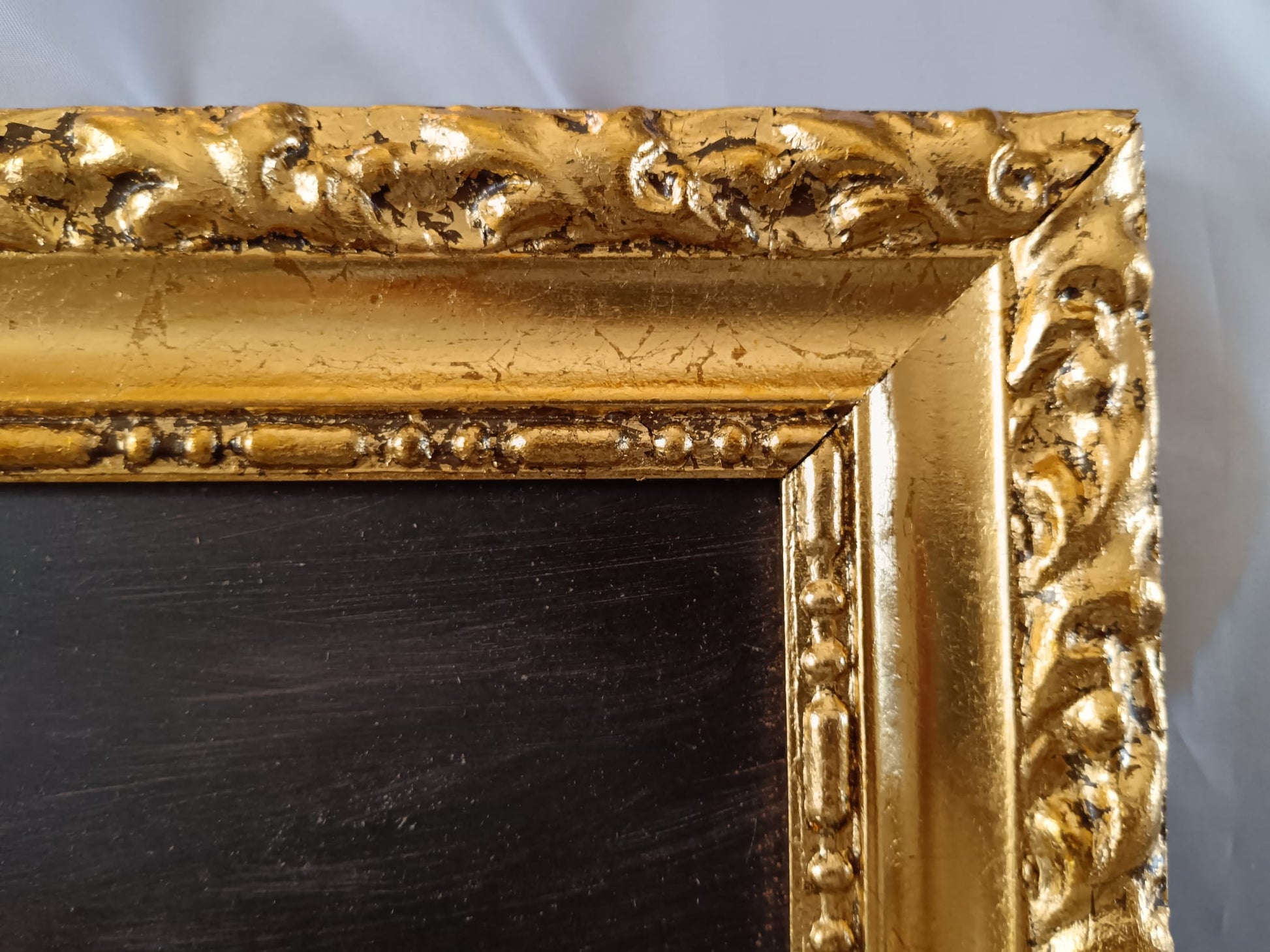 Cornice in legno foglia oro.