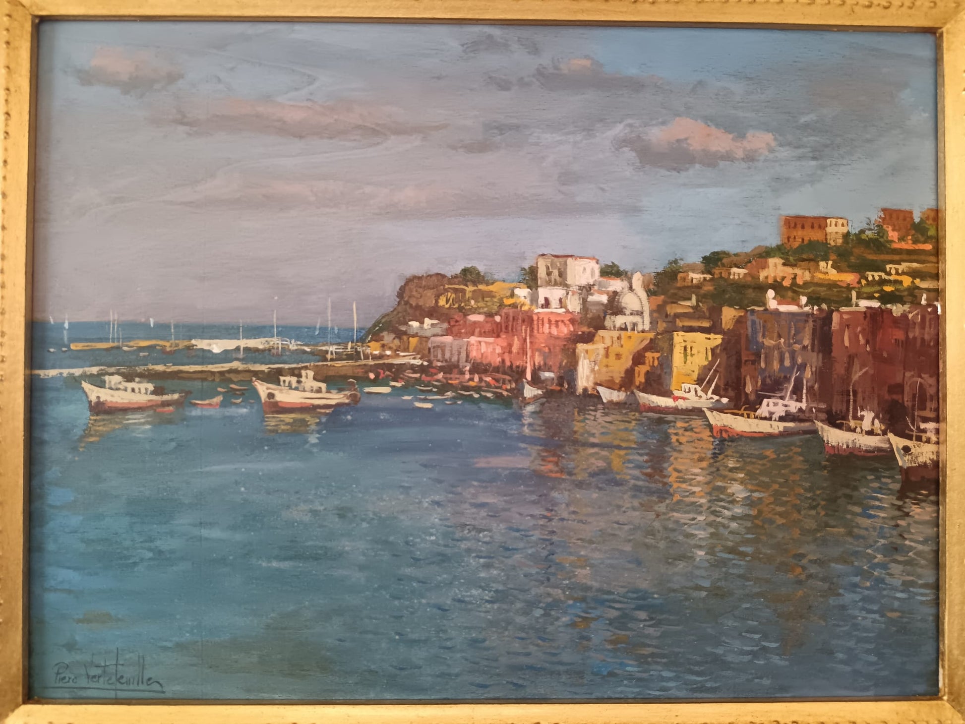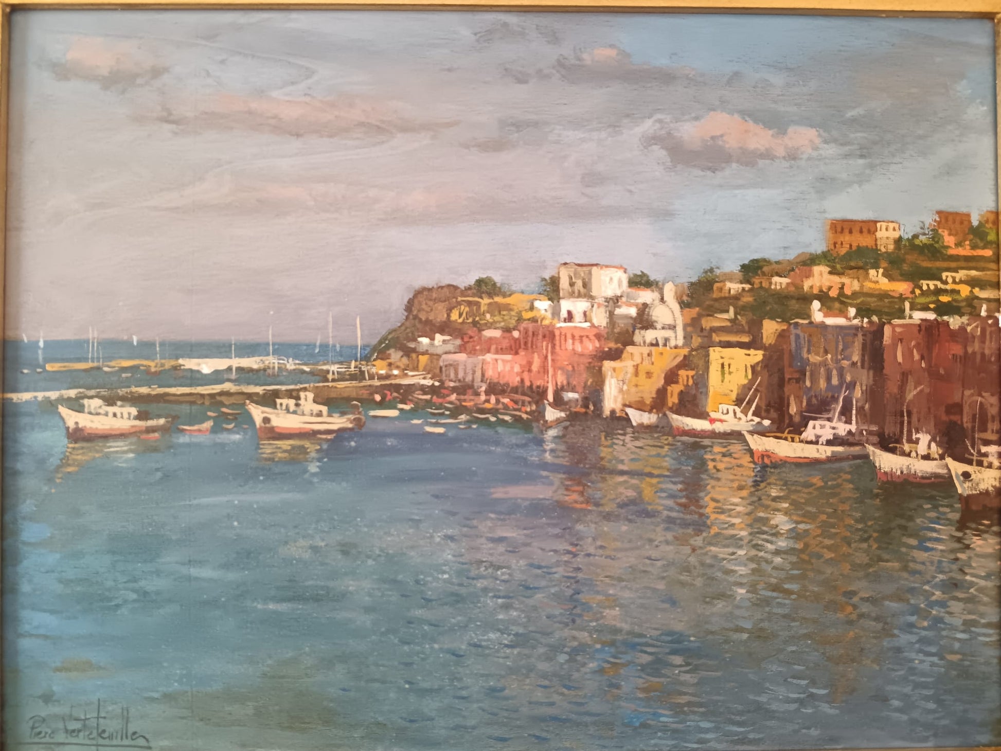 Piero Verteville (XX Secolo)- L'isola Di Procida- dipinto olio su legno