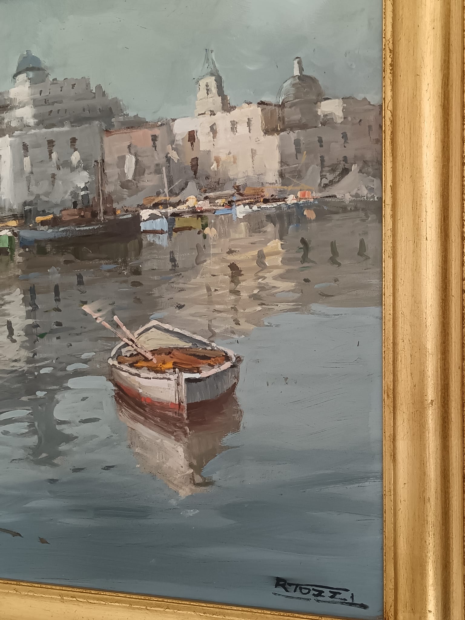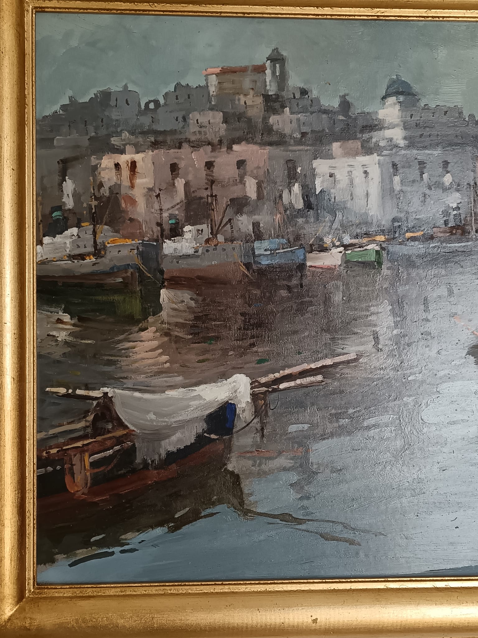 Raffaele Tozzi ( Napoli 1950) Scorcio Marino, dipinto olio su masonite.