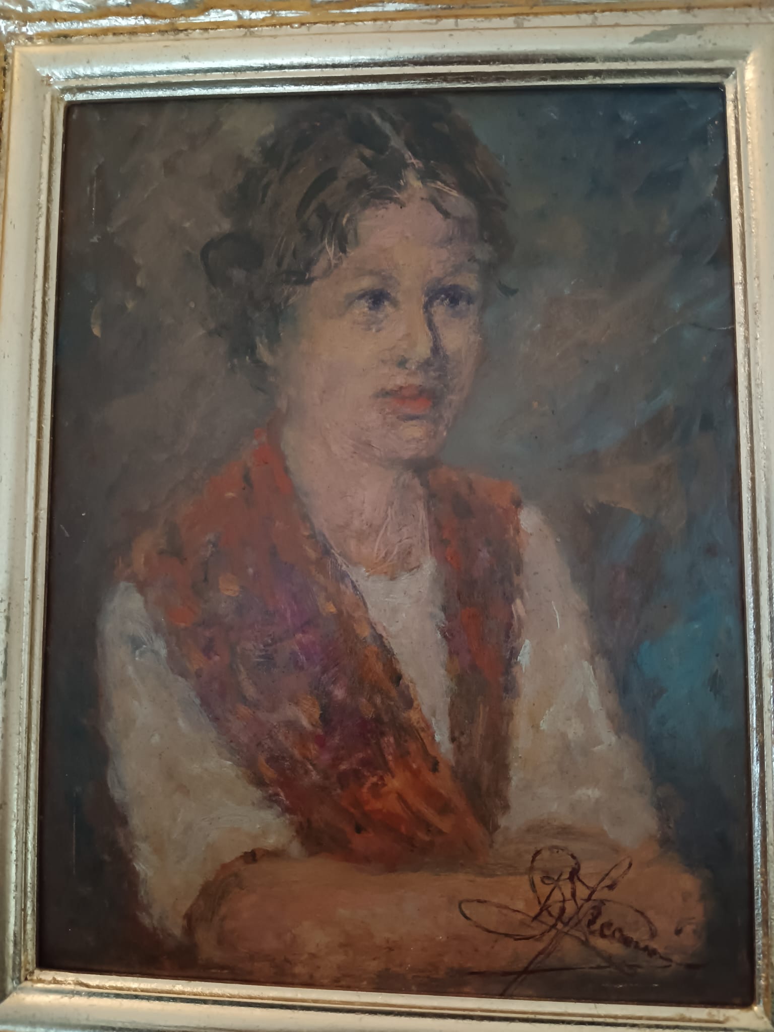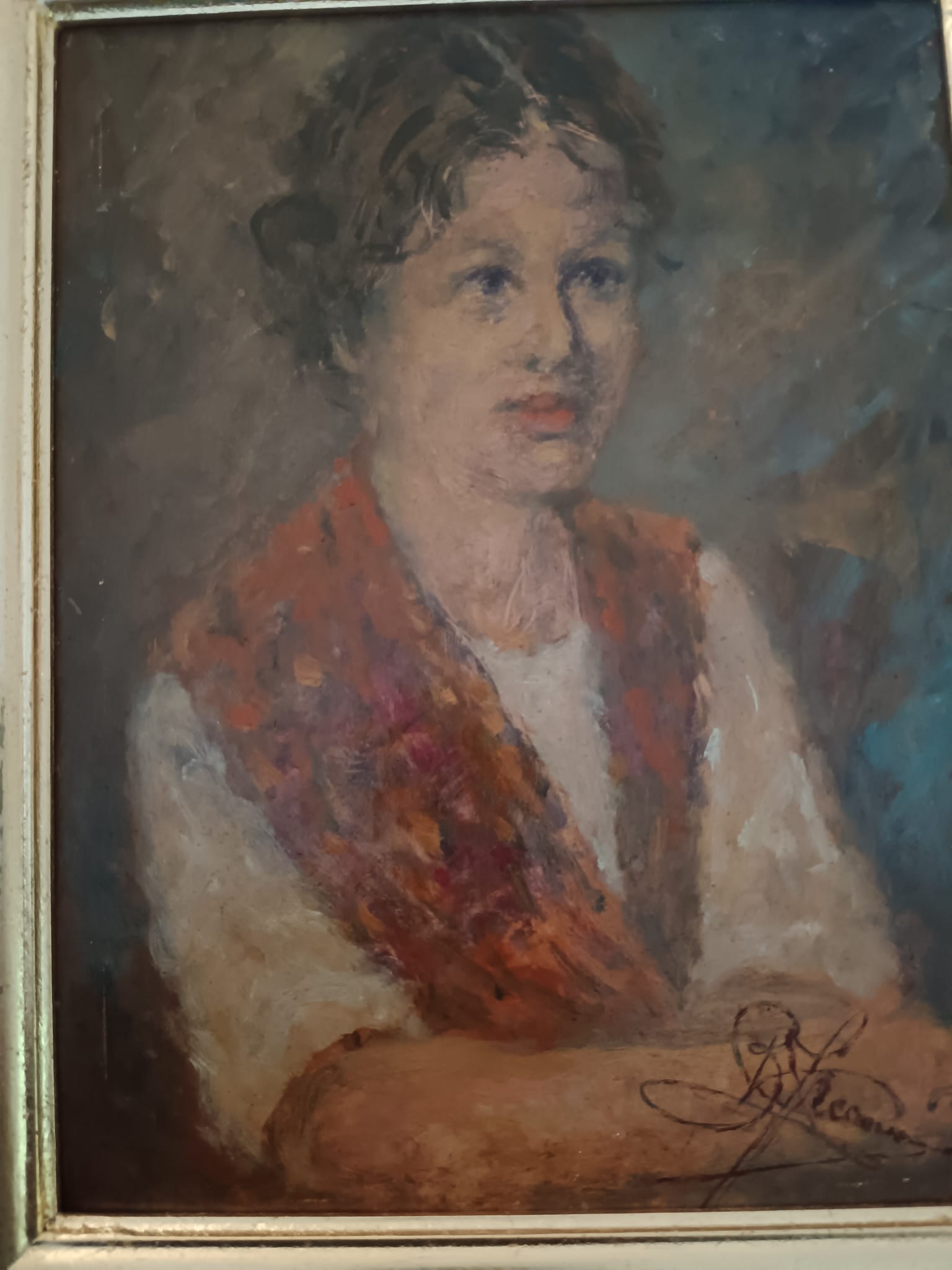 Ritratto ( Scuola italiana XX Secolo) dipinto olio su cartoncino.