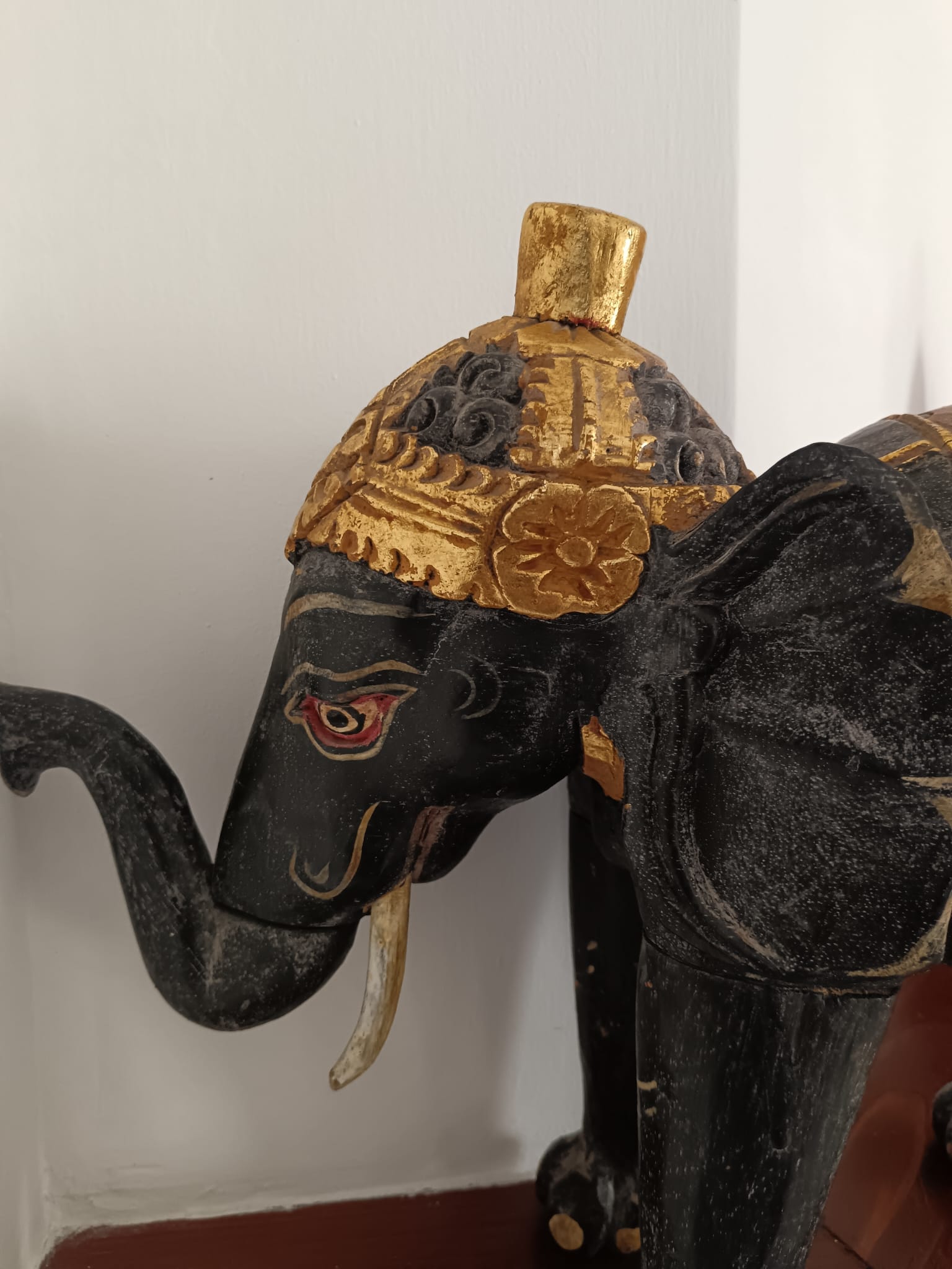 Scultura di elefante dipinta a mano (India o Sud-Est asiatico)