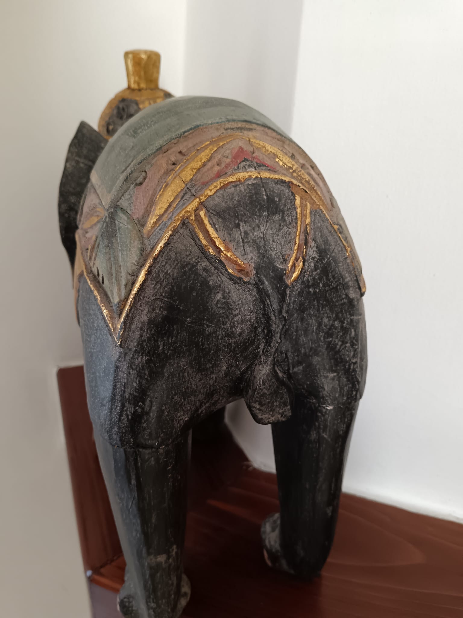 Scultura di elefante dipinta a mano, originaria dell'India o del Sud-Est asiatico.
