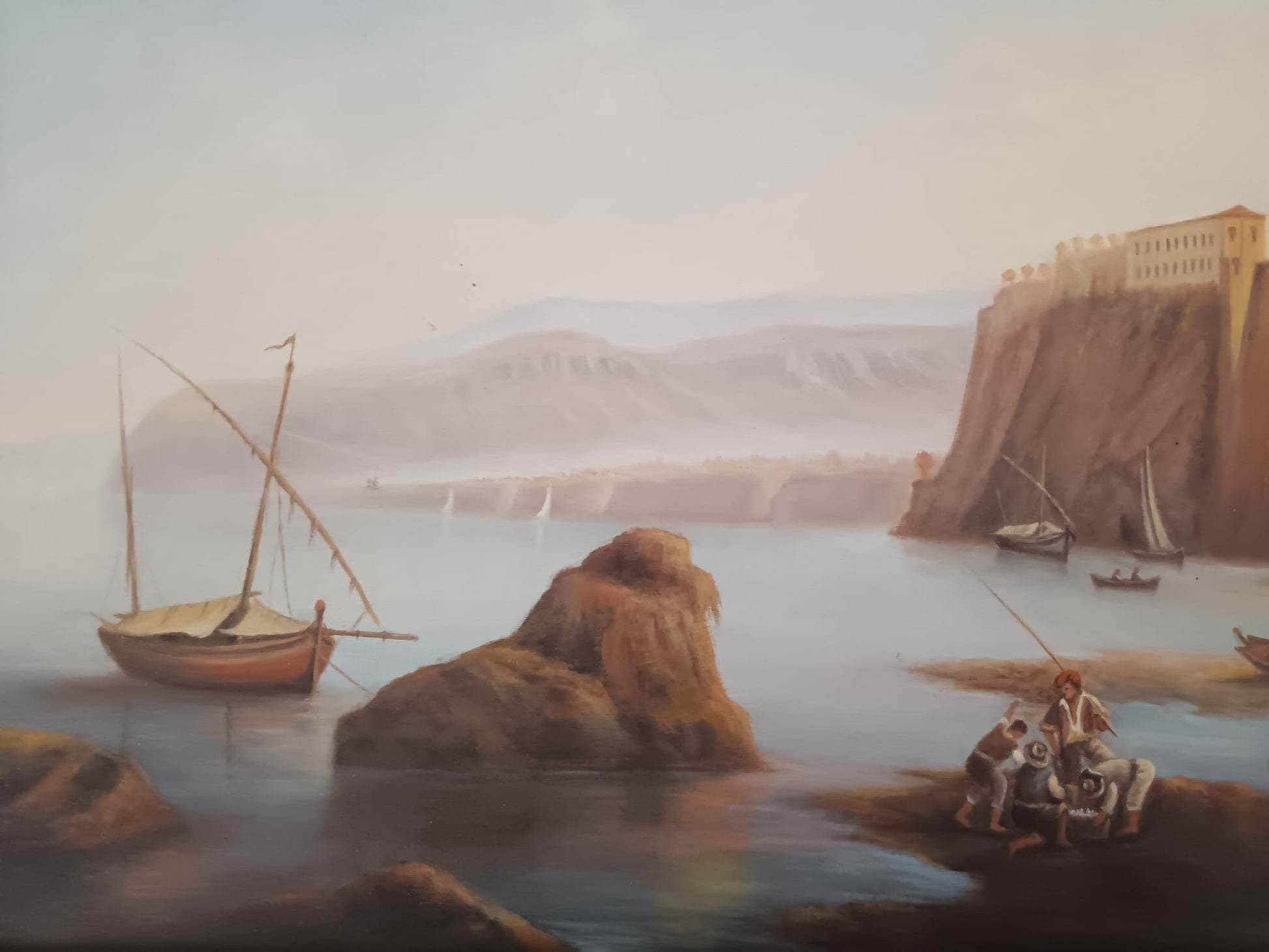 Opera intitolata "La casa del Tasso", che rappresenta la casa natale del poeta Torquato Tasso a Sorrento,vista da ovest, con la tipica mole calcarea di Capo Scutolo sullo sfondo.