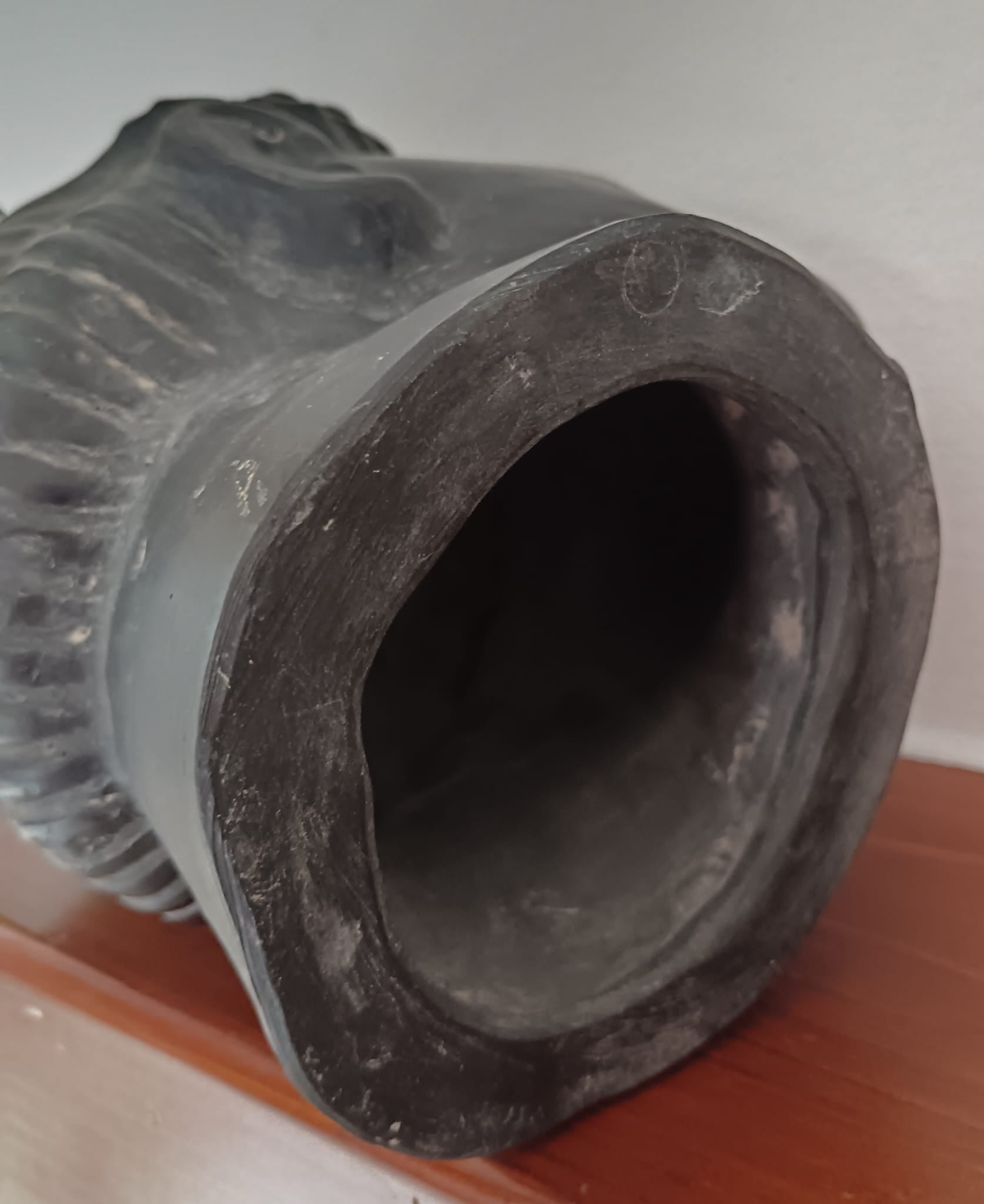 Testa fittile, scultura in terracotta dipinta in stile archeologico, XX Secolo.
