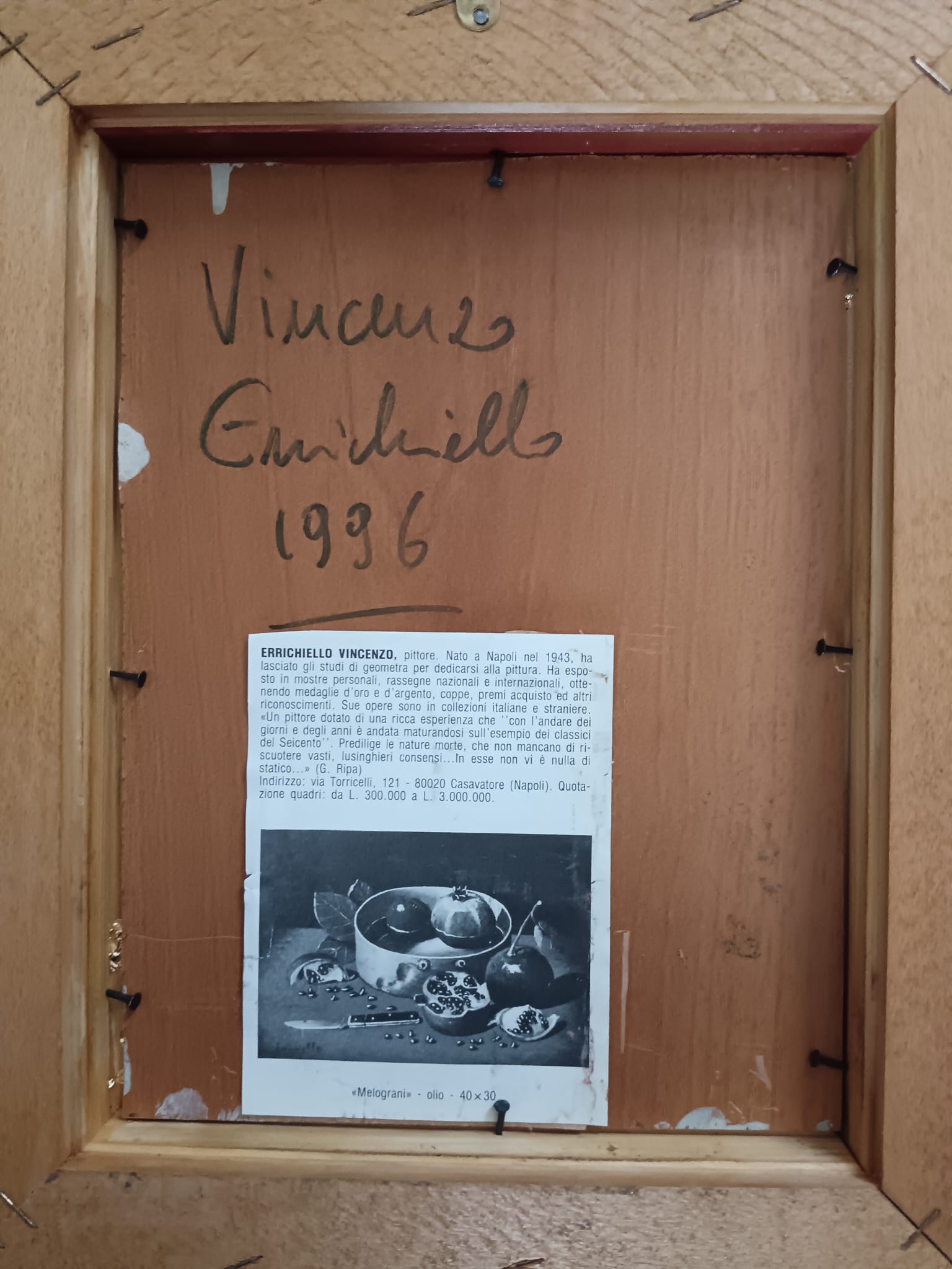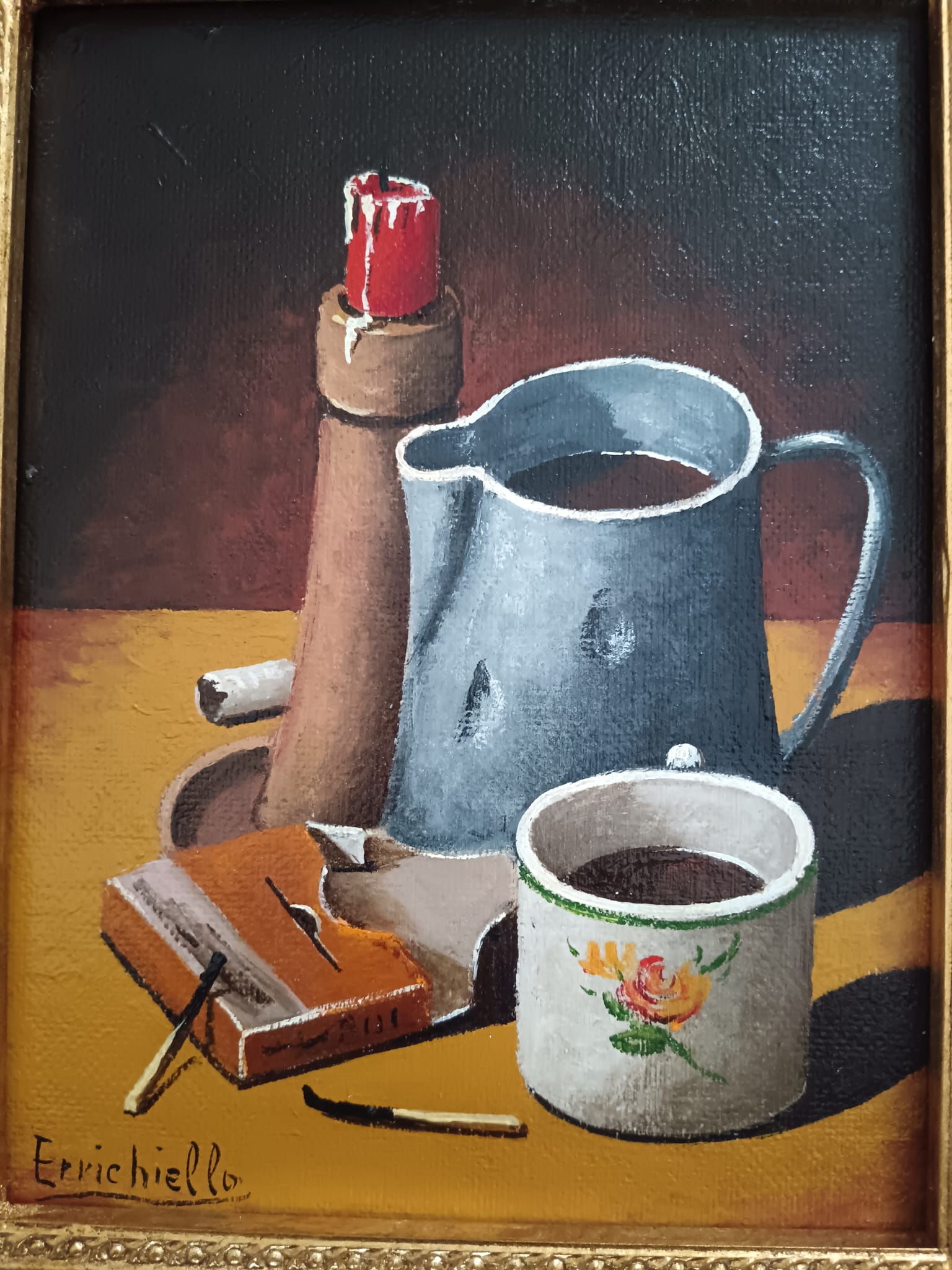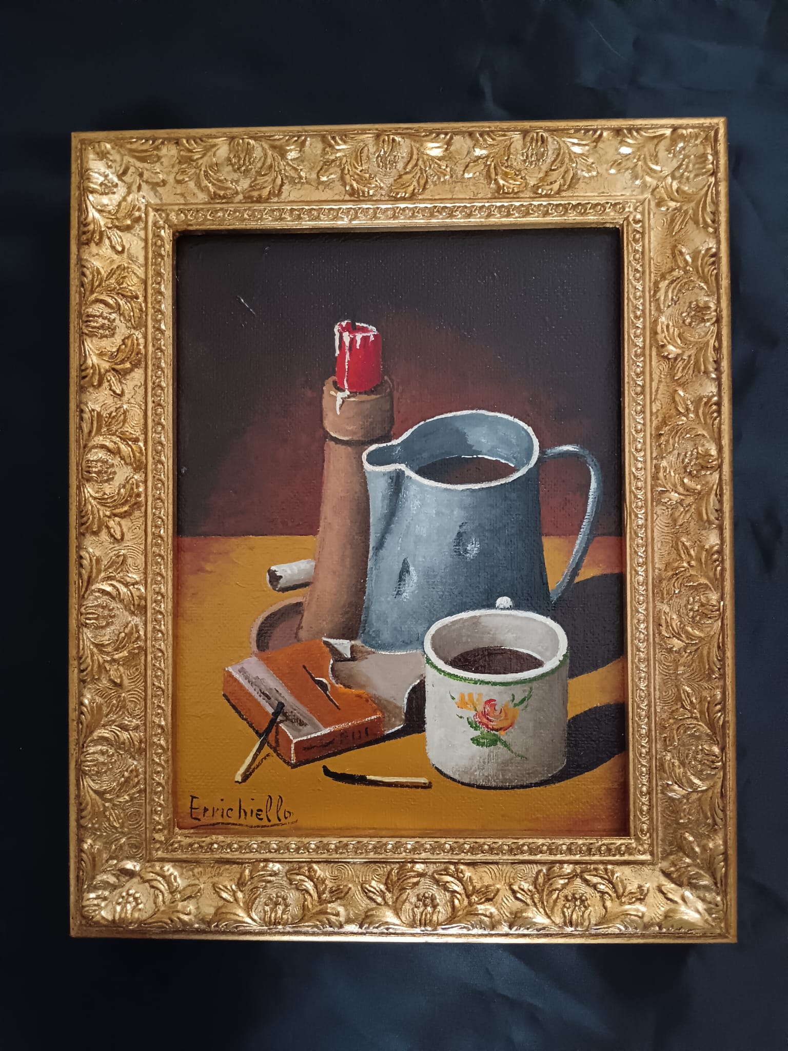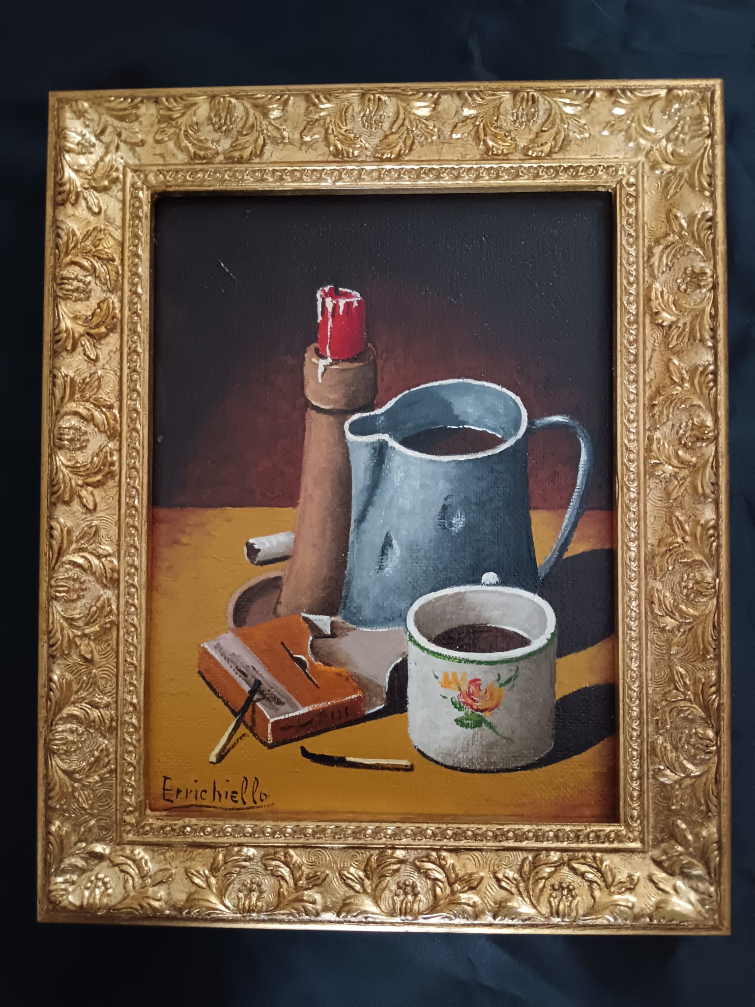 Vincenzo Errichiello ( Napoli 1943) Natura Morta dipinto olio su legno.